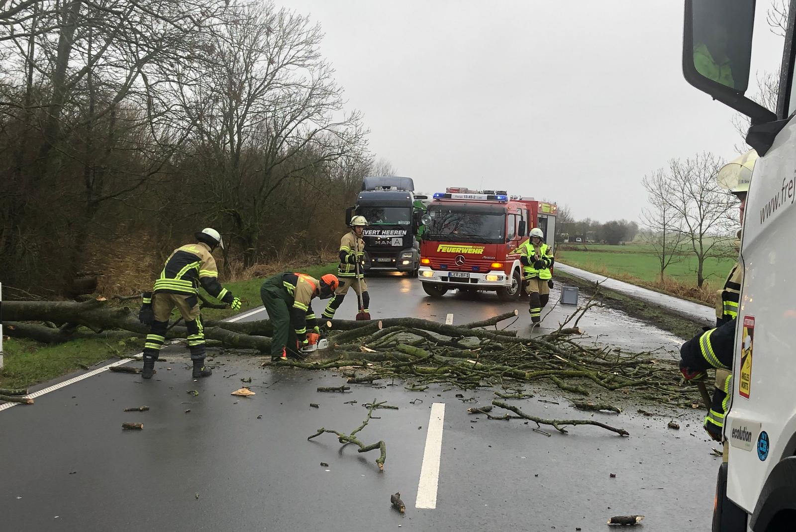 Am frühen Freitagnachmittag ist ein Baum in Höhe Coldam auf die Bundesstraße 436 gestürzt und hat die gesamte Fahrbahn blockiert. Die gegen 12.37 Uhr alarmierte Feuerwehr aus Bingum rückte umgehend an und begann damit, die Straße wieder zu räumen. Während der Dauer der Beseitigung – rund eine halbe Stunde – war die Bundesstraße 436 in beide Richtungen voll gesperrt. Mittlerweile ist sie wieder frei befahrbar.