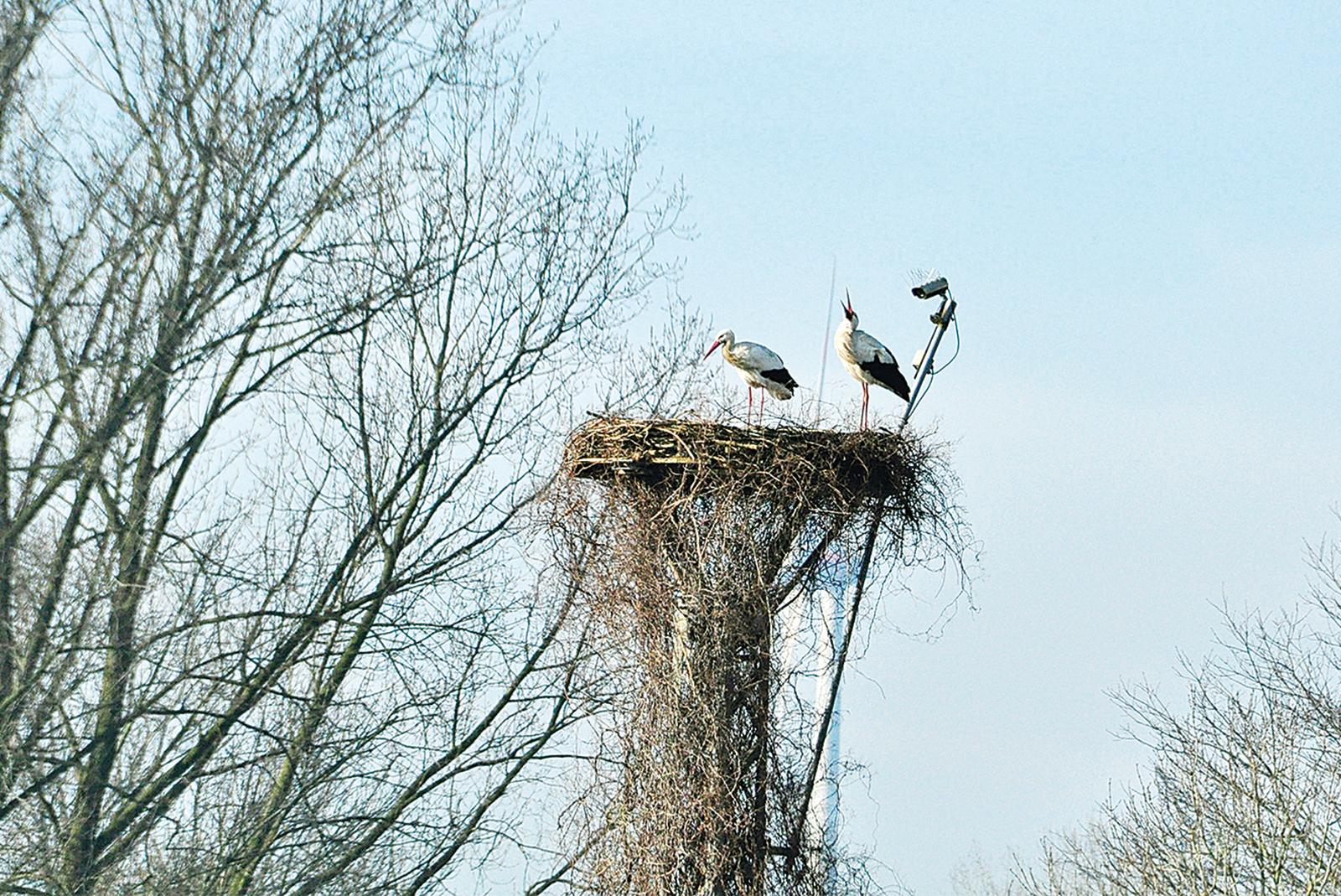 Die beiden Störche, die das Storchennest in Weener-Buschfeld schon im vergangenen Jahr besetzt haben, sind zurück, und das recht früh in diesem Jahr. Eduard Hesse hat den beiden gefiederten Ankömmlingen sozusagen das Nest bereitet. »Das Nest ...