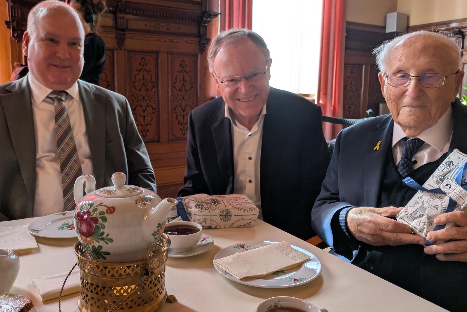Zwei Tage vor dem 100. Geburtstag von Albrecht Weinberg wünschte Niedersachsens Ministerpräsident Stephan Weil dem Holocaust-Überlebenden am Mittwoch bereits alles Gute zu seinem Ehrentag. Bei einem Tee-Empfang im Trauzimmer des historischen Rathauses der Stadt Leer ...