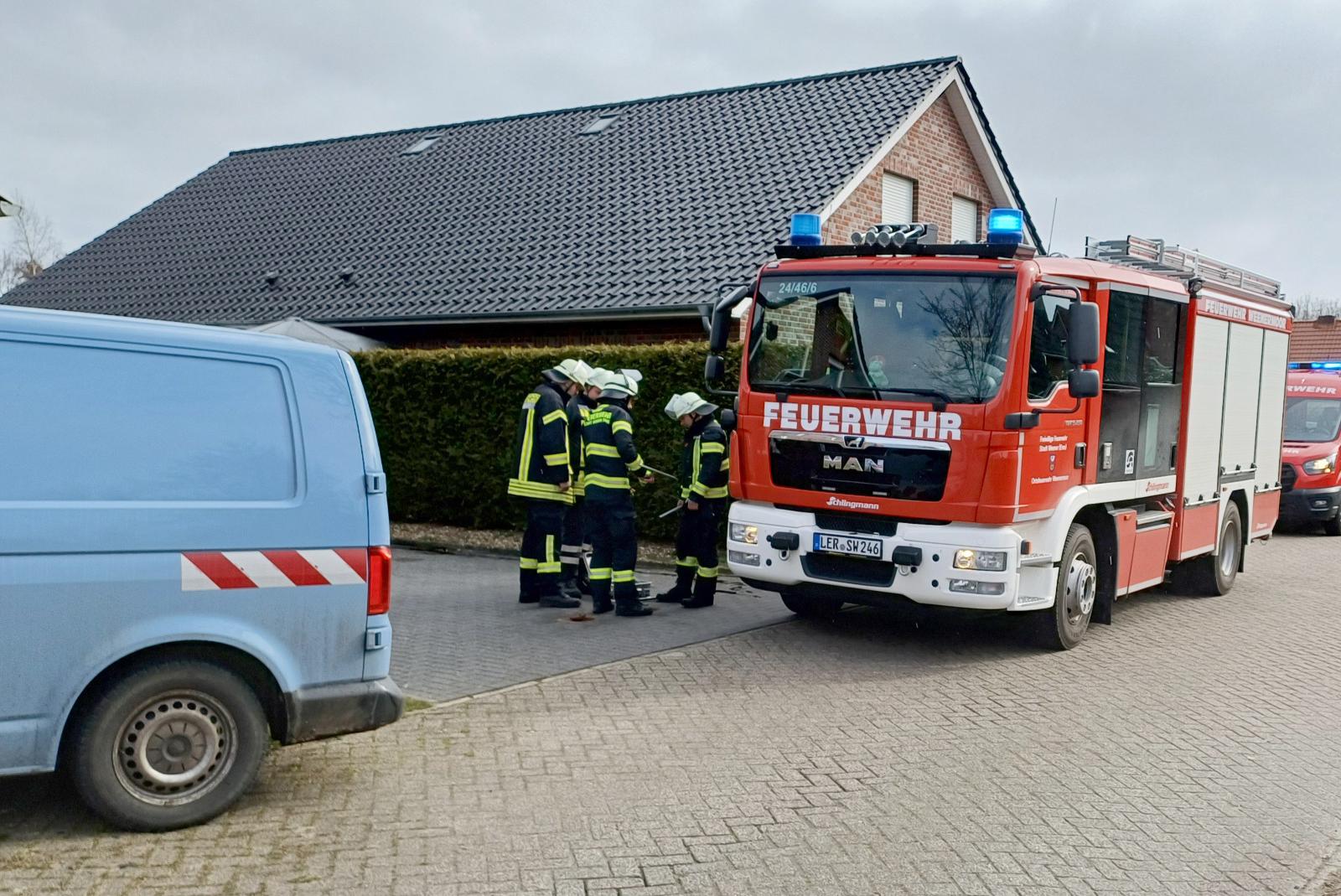 Im Einsatz waren das Hilfeleistungslöschgruppenfahrzeug HLF 20, der Mannschaftstransportwagen (MTW) sowie mehrere Einsatzkräfte der Feuerwehr Weenermoor. Zudem waren der Notdienst des Wasserversorgers und des Energieversorgers vor Ort.