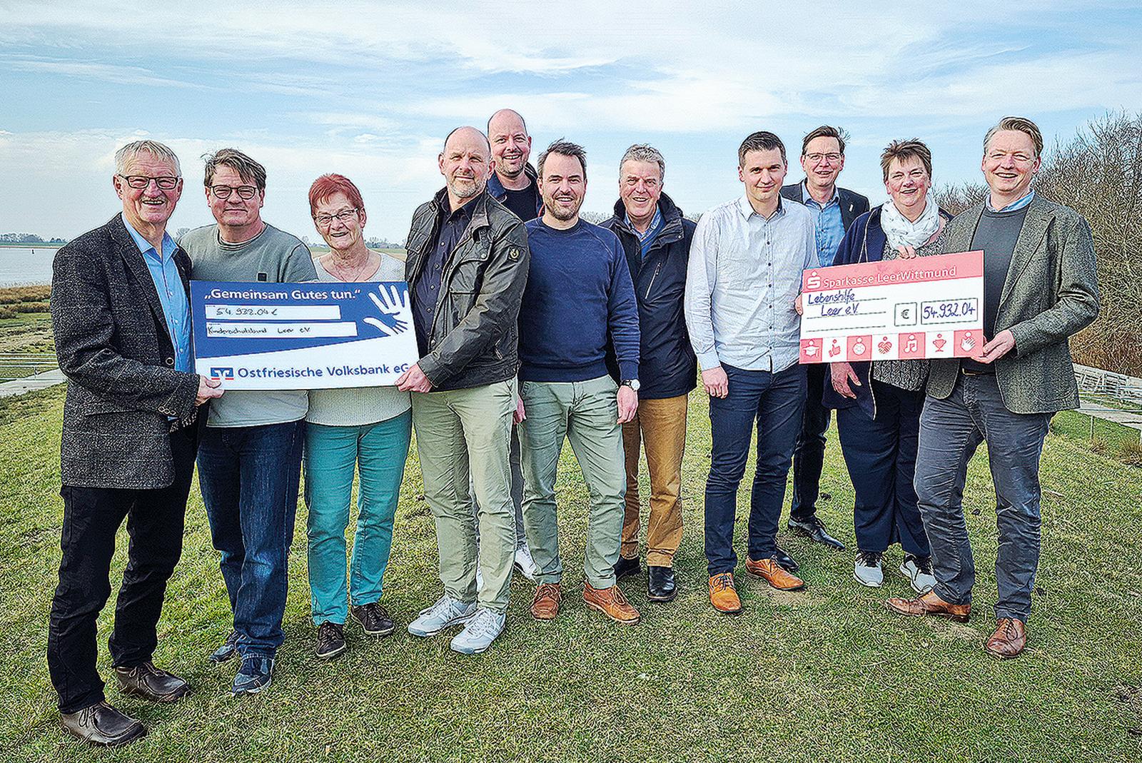 Die Ausschüttung des Reinerlöses der 32. Leeraner Weihnachtverlosung erbrachte erneut ein imposantes Ergebnis. Schecks über je rund 55.000 Euro wurden nun von der Werbegemeinschaft an den Kinderschutzbund Leer und die Lebenshilfe Leer überreicht. Die Organisatoren danken den vielen ehrenamtlichen Losverkä...
