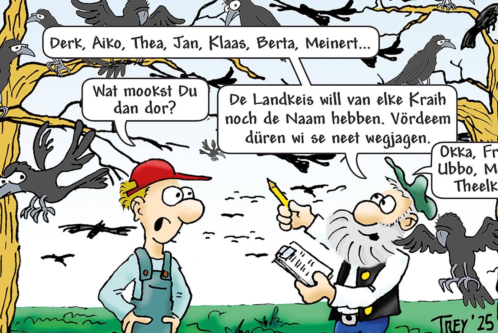 Wird es jemals gelingen, die Saatkrähen, die sich mit einer riesigen Kolonie im Stapelmoorer Park angesiedelt haben, aus ihren Nestern zu vertreiben? Unser Karikaturist Thomas Trey hat sich mit spitzer Feder der Angelegenheit angenommen. Einstweilen, so sieht er die ...