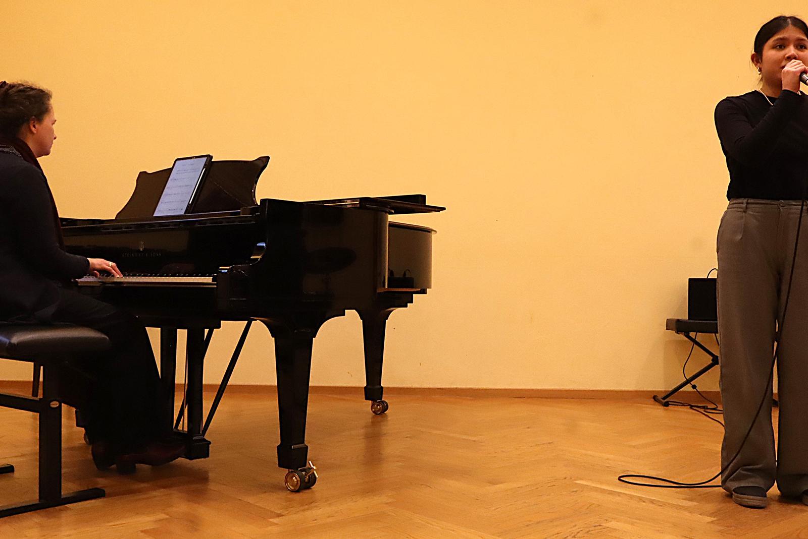 Celine Helmig aus Weener steht im Bundesentscheid von »Jugend Musiziert«. Das Bild enstand beim Regionalentscheid in Leer. Katharina Lücht begleitet sie am Klavier. © Foto: Ammermann