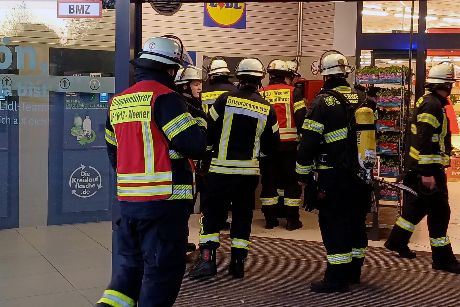 Feuerwehr Weener rückt zum Lidl-Markt aus