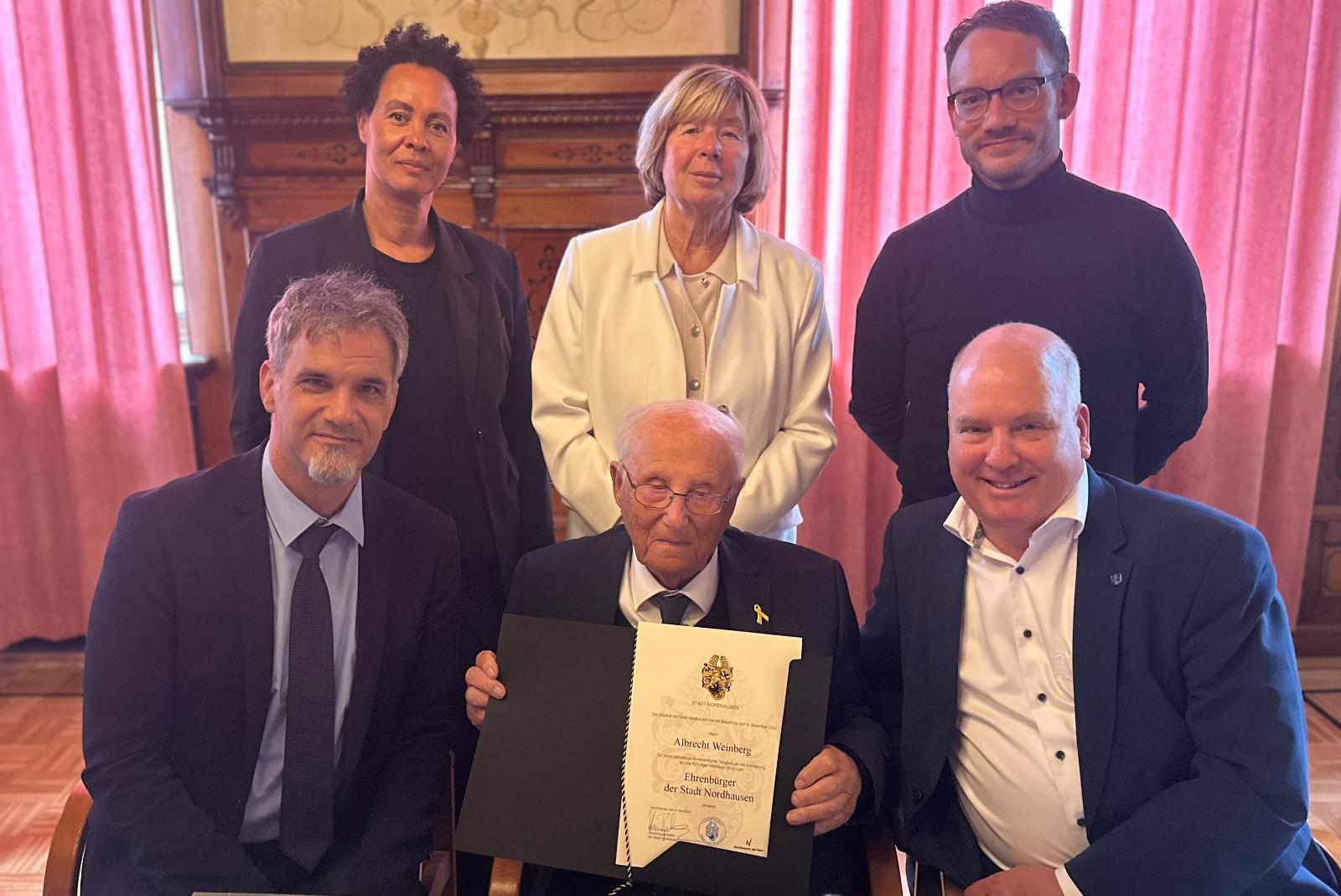 Der Holocaust-Zeitzeuge Albrecht Weinberg aus Leer ist nun auch Ehrenbürger von Nordhausen. Eine Delegation der thüringischen Kreisstadt mit Oberbürgermeister Kai Buchmann (parteilos) an der Spitze verlieh dem 100-Jährigen diese Würde ...