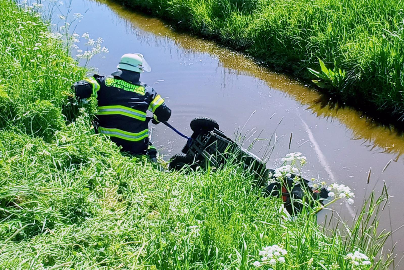 Am Middelweg in Weenermoor ist am Sonntagnachmittag ein Mann mit einem Elektro-Rollstuhl in einen Graben gestürzt. Ersthelfer konnten den Verunglückten rechtzeitig bergen, wie Feuerwehr-Pressesprecher Joachim Rand mitteilte.