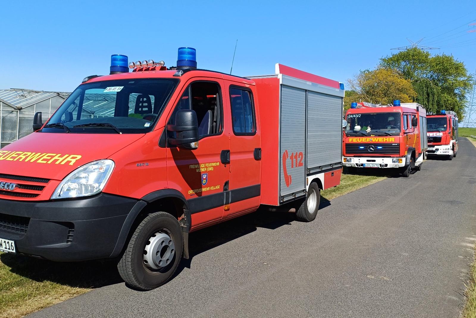 Im Einsatz waren die Feuerwehr Vellage mit ihrem Tragkraftspritzenfahrzeug TSF-W, die Feuerwehr Diele mit dem Löschgruppenfahrzeug LF 8 sowie die Feuerwehr Stapelmoor mit dem Hilfeleistungslöschgruppenfahrzeug HLF 10 und mehreren Einsatzkräften.