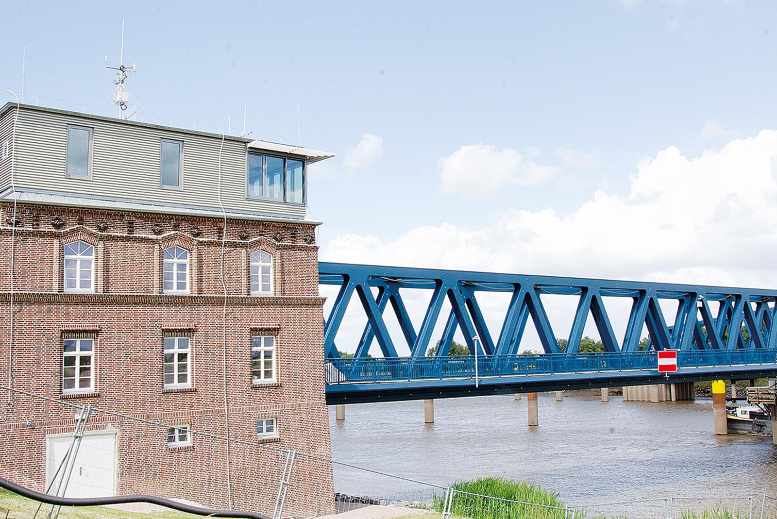 Auf dem Dach des Brückenwärterhauses in Weener ist der AIS-Mast installiert.  © Foto: Hanken