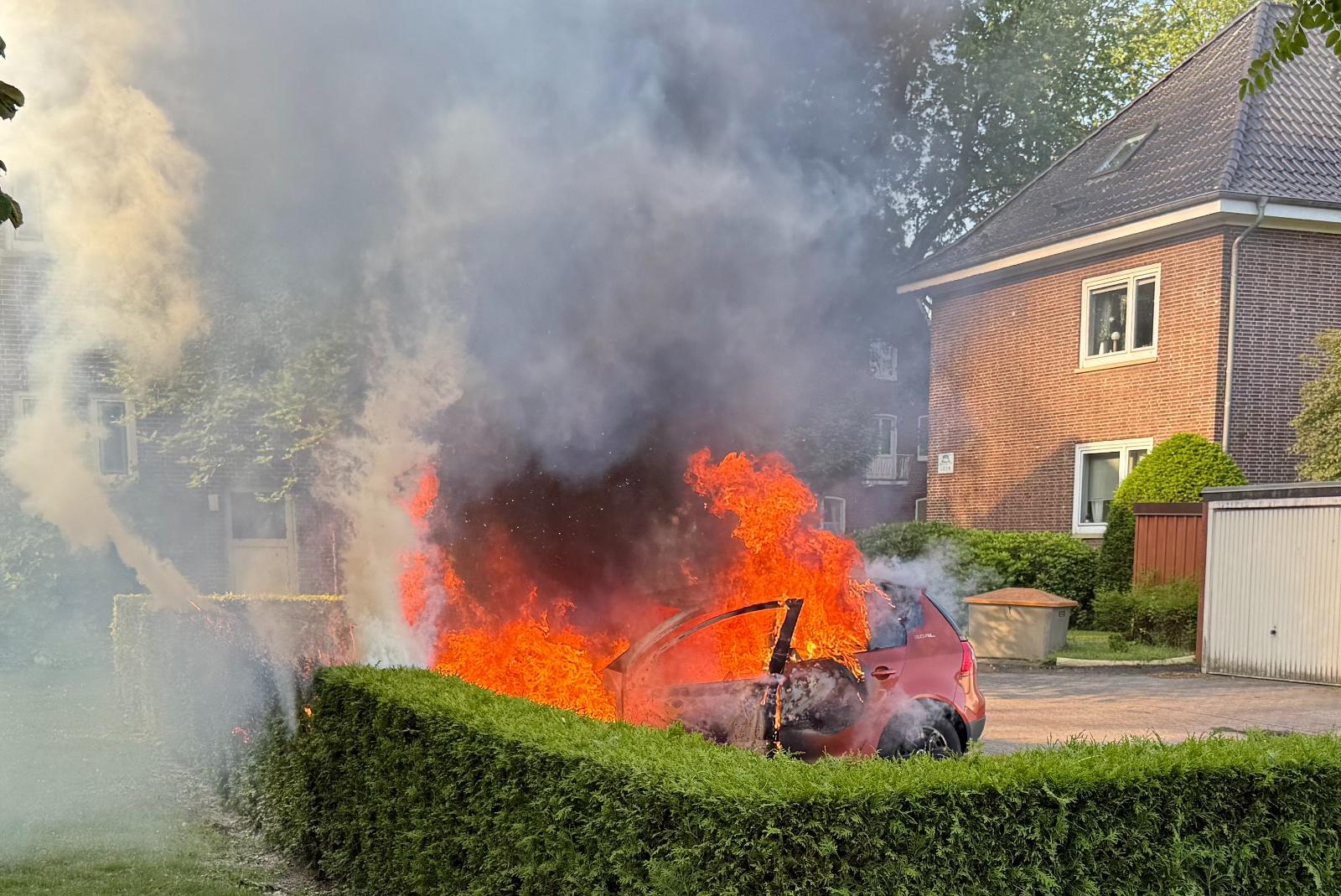 Auto steht lichterloh in Flammen