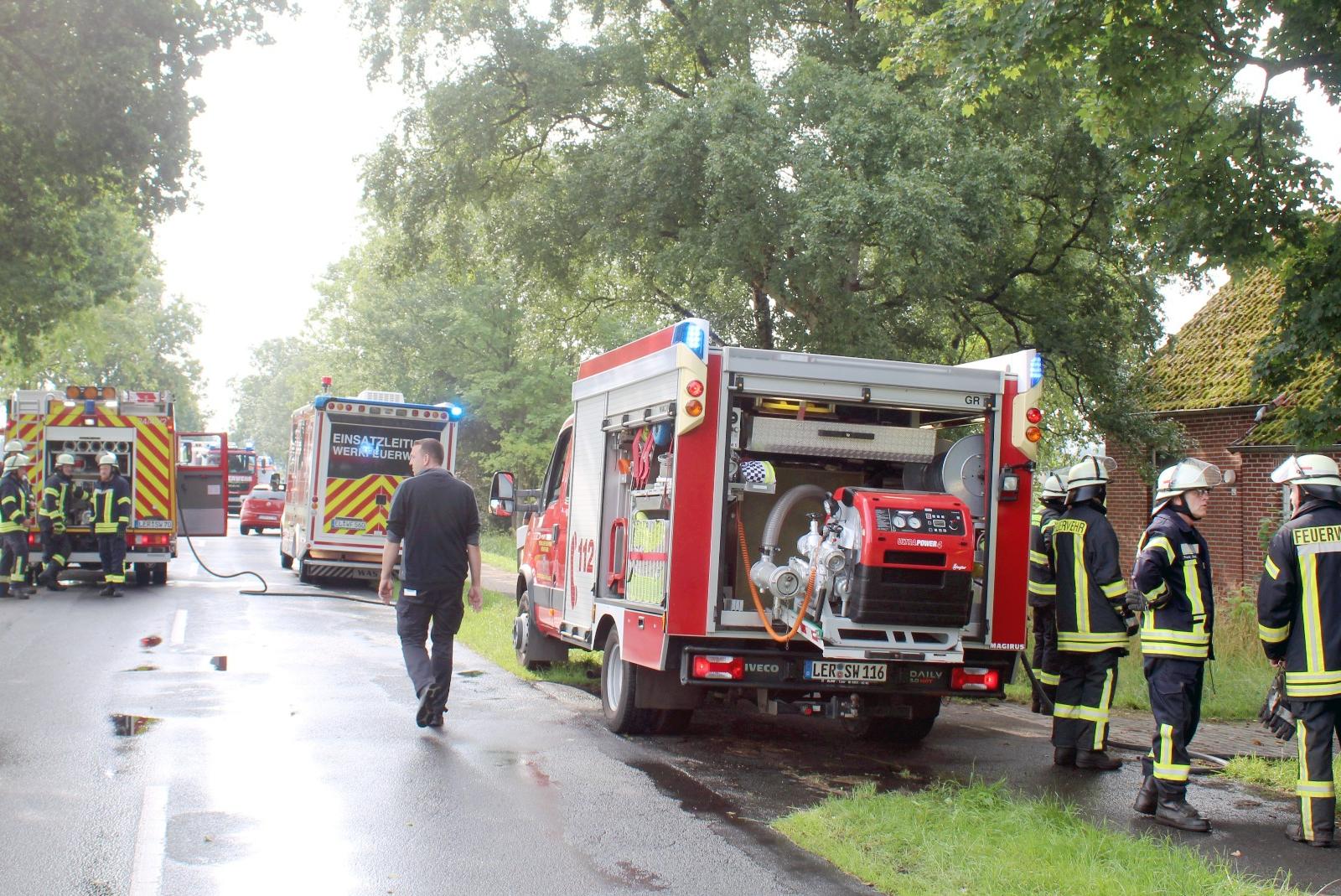 Die Feuerwehr Oberrheiderland war mit dem Löschgruppenfahrzeug LF 8, dem Hilfeleistungslöschgruppenfahrzeug HLF 10, dem Tragkraftspritzenfahrzeug TSF W und mehreren Einsatzkräften vor Ort. Auch die Polizei war am Einsatzort. Die ebenfalls alarmierte Feuerwehr Weener konnte ihre Einsatzfahrt abbrechen, da der Brand schnell unter Kontrolle gebracht wurde.