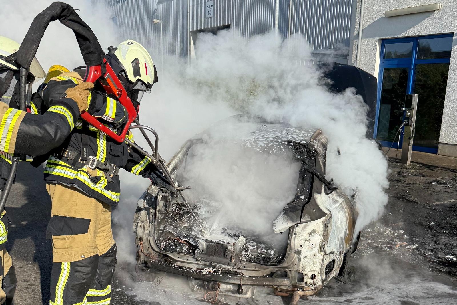 Am Montagmorgen ist es auf dem Betriebsgelände eines metallverarbeitenden Betriebes am Logaer Sieltief in Loga zu einem Fahrzeugbrand gekommen. Ein Plug-in-Hybrid hatte während des Ladevorgangs an einer Wallbox plötzlich im Bereich des Akkus Feuer gefangen.