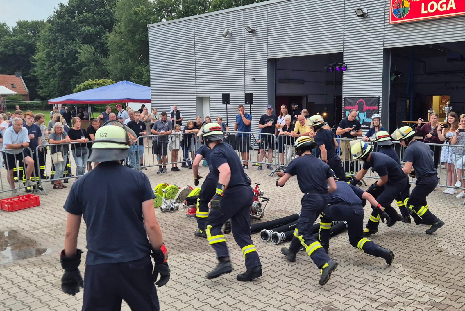 Die Jugendfeuerwehr aus Loga eröffnete den Wettkampf. Im Anschluss führten die fünf Feuerwehren der Stadt Leer und eine Gastgruppe aus Bagband die Übung durch. Beobachtet wurden sie hierbei von Stadtbrandmeister Jan Doosje und seinem sechsköpfigem Wertungsteam.