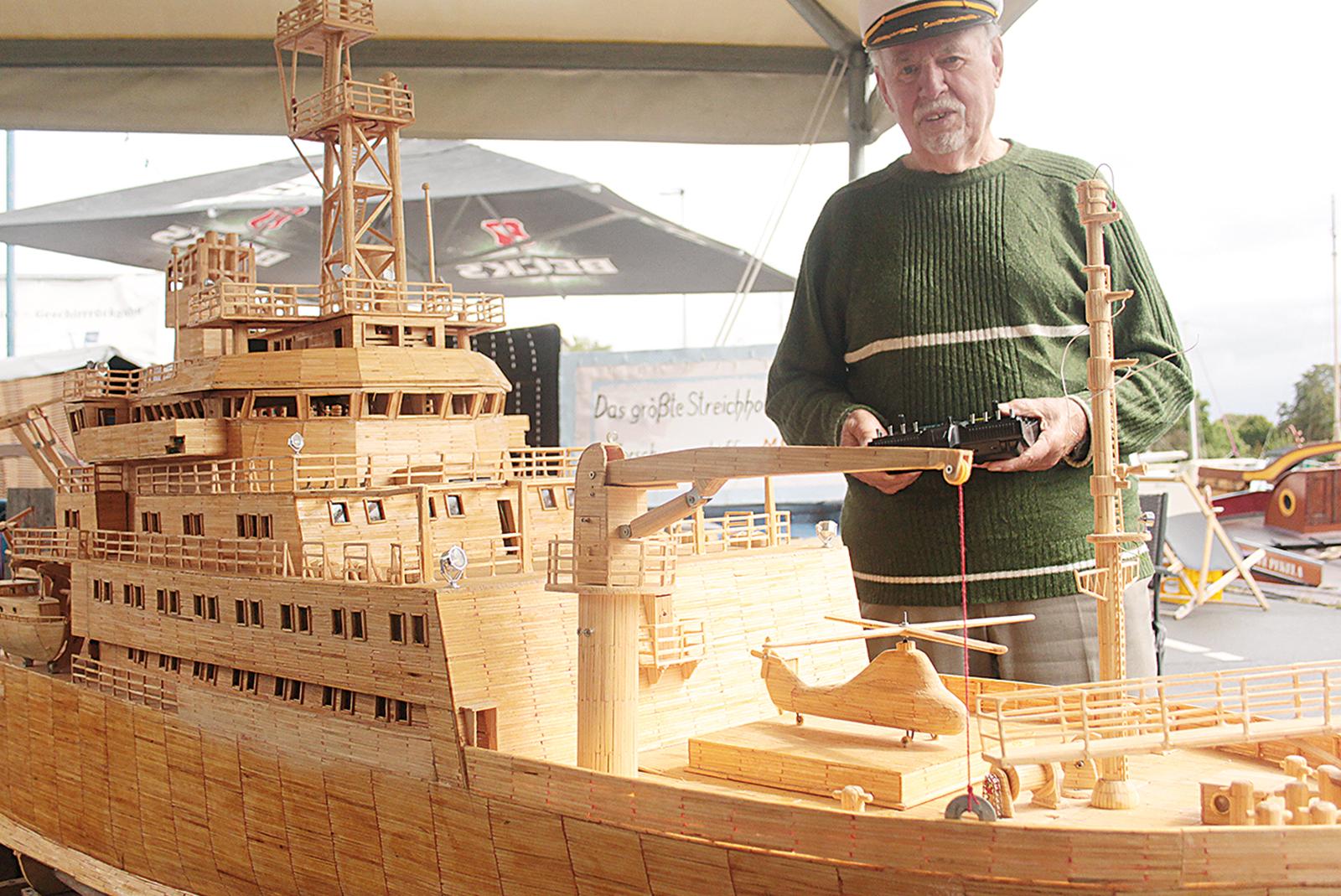 Weltweit größtes Modellschiff aus Streichhölzern macht noch bis morgen Halt in Weener – Es bietet sogar Platz für einen echten Passagier
