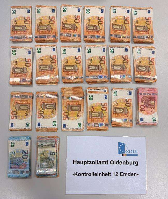 Am Dienstag wurde in den frühen Abendstunden ein Audi A 6 mit Bremer Zulassung von Einsatzkräften der Kontrolleinheit Emden am Grenzübergang Bunderneuland aus dem fließenden Verkehr gezogen. Bei der Durchsuchung des Fahrzeugs entdeckte ein Zollbeamter schließlich in der Mittelkonsole des Wagens in einem Staufach unter der Armlehne ein in einen Speisekartenflyer eingewickeltes Geldbündel. Das Bündel enthielt insgesamt 471 Euro Geldscheine im Gesamtwert von 19.765 Euro.