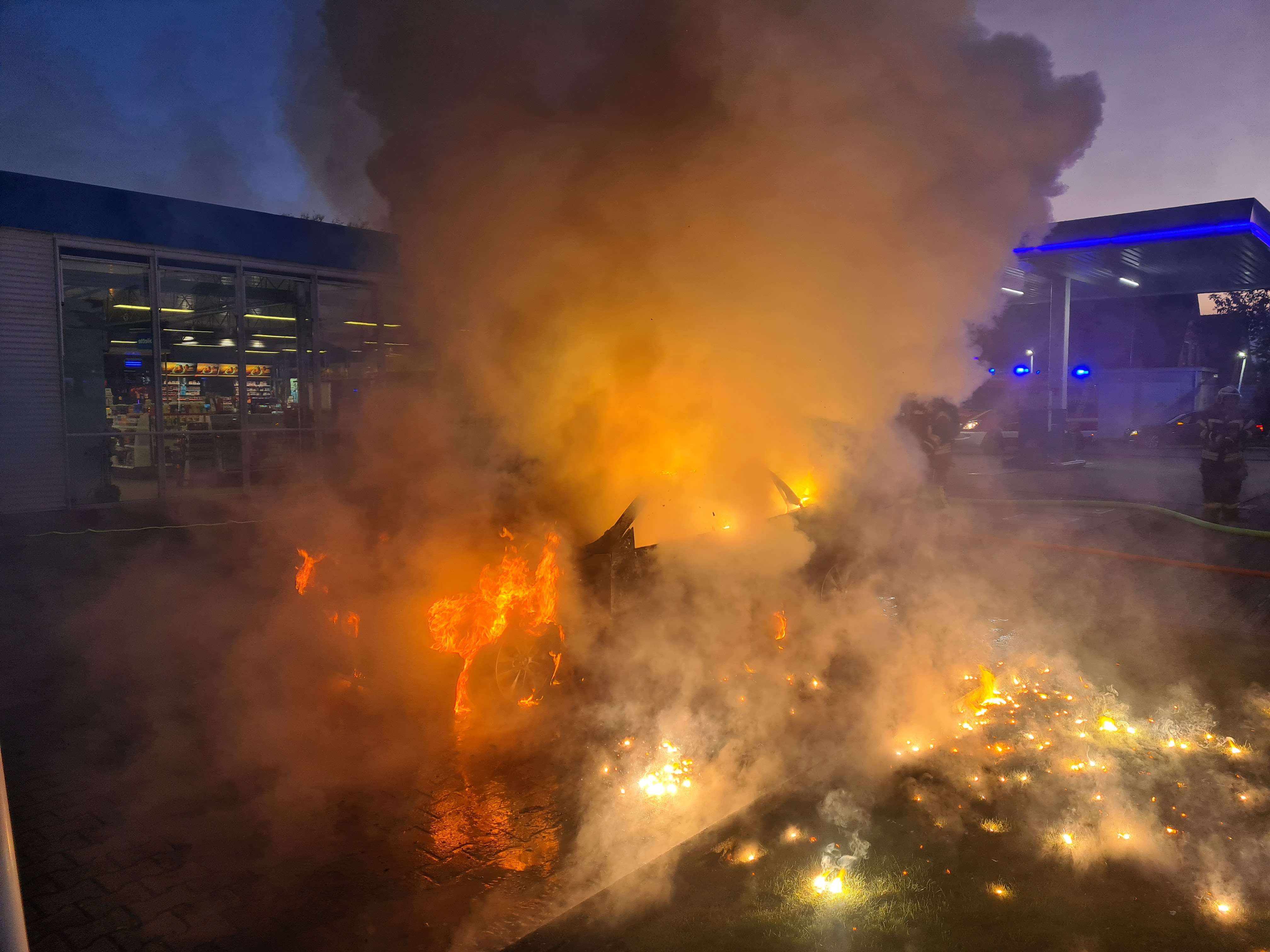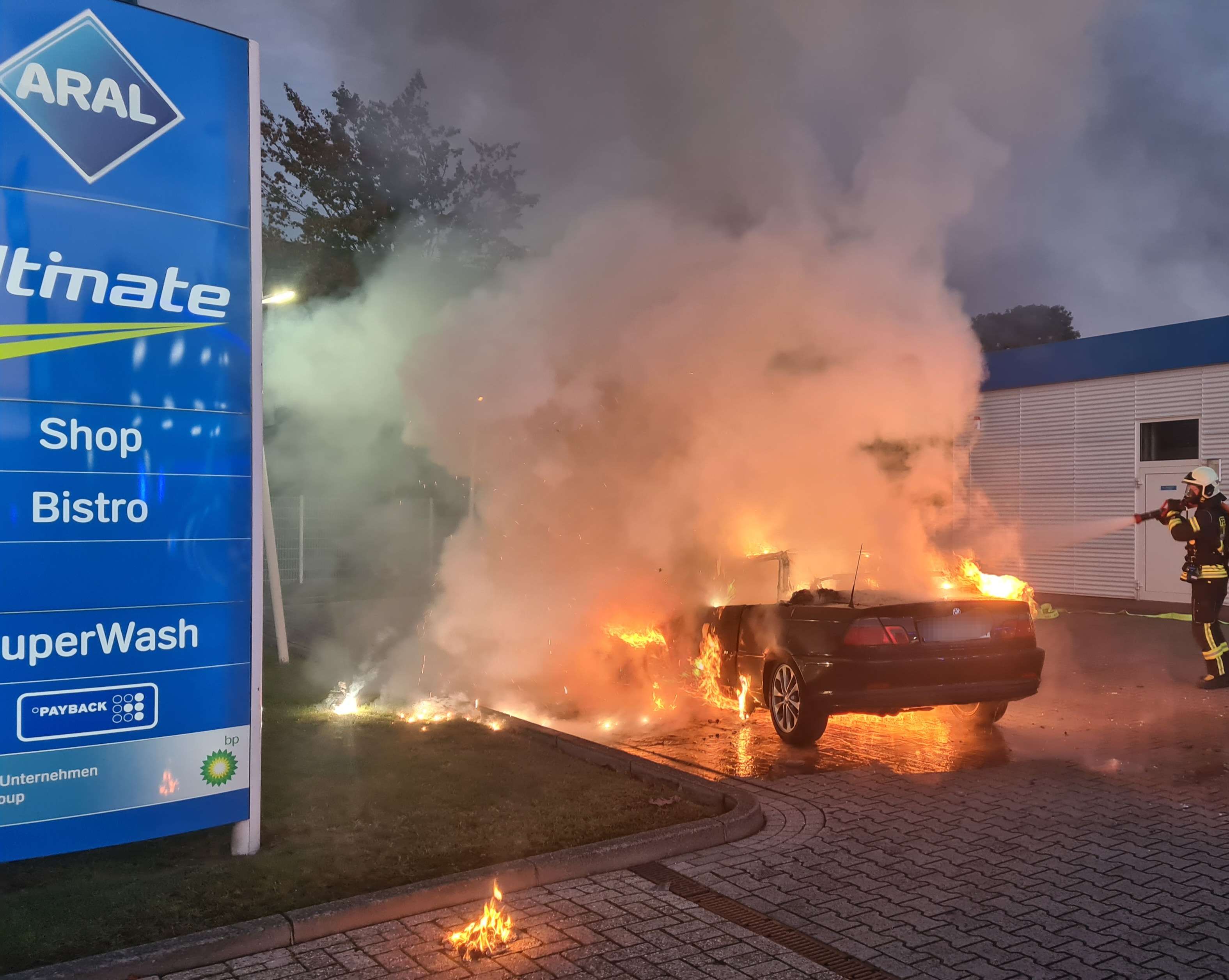 Auto brennt auf Tankstellengelände komplett aus