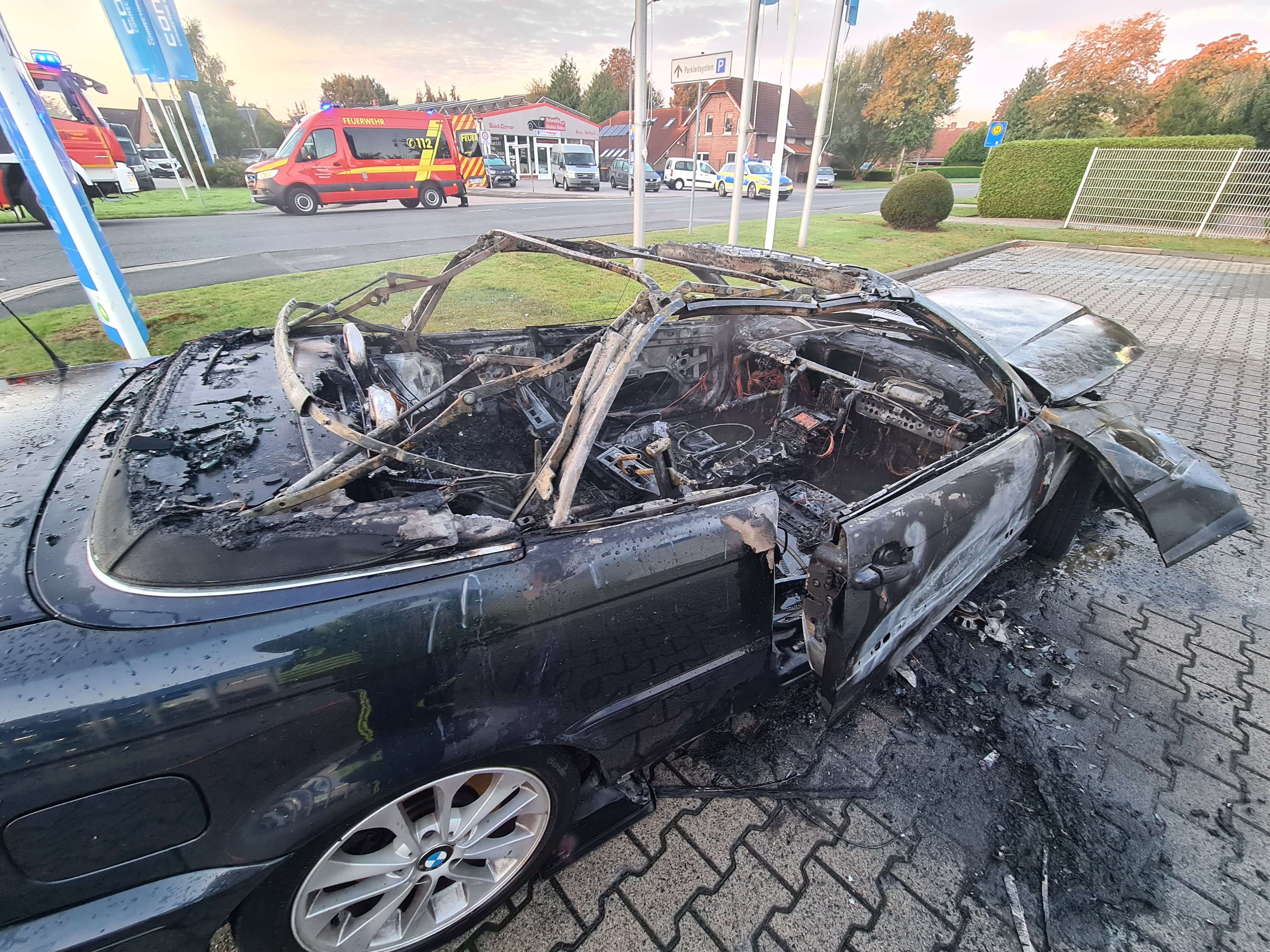 Beim Eintreffen der Feuerwehr stand das Fahrzeug bereits im Vollbrand. Die Einsatzkräfte löschten den Brand unter Atemschutz. Menschen kamen nicht zu Schaden, auch Gebäude waren nicht betroffen. Der Pkw brannte vollständig aus.