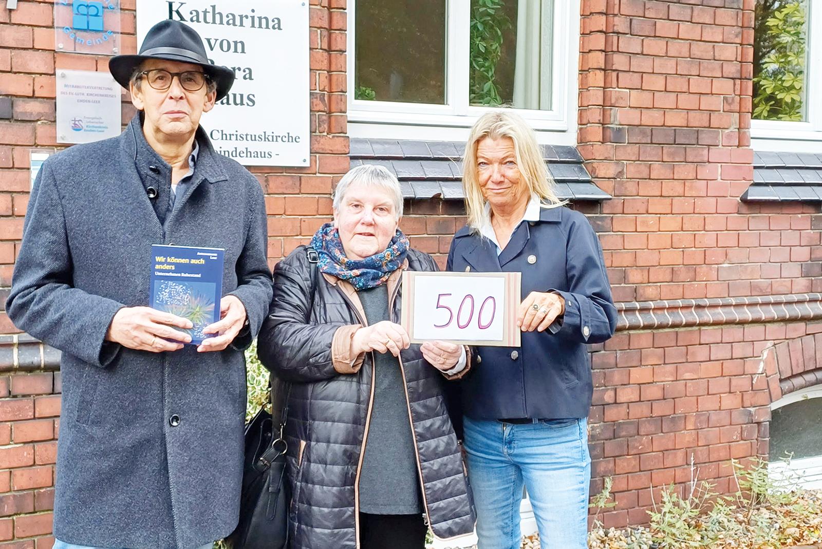 Hoch erfreut zeigte sich Else Bierbrauer, Leiterin der Suppenküche der evangelisch-lutherischen Christuskirche Leer, über die 500 Euro-Spende, die sie jetzt von Mechthild Tammena und Berend Wilbers entgegen nehmen konnte. Der Betrag stammt aus dem Verkauf des Buches »Wir können ...