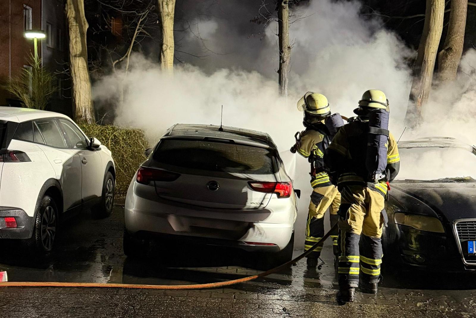 Durch den zum Zeitpunkt des Brandes ungünstigen Wind griff das Feuer noch vor dem Eintreffen der ersten Einsatzkräfte auf einen unmittelbar daneben geparkten weiteren Opel über. Die Feuerwehr war binnen weniger Minuten vor Ort und leitete umgehend die Brandbekämpfung ein. Das Feuer konnte zügig unter Kontrolle gebracht und schließlich vollständig gelöscht werden.
