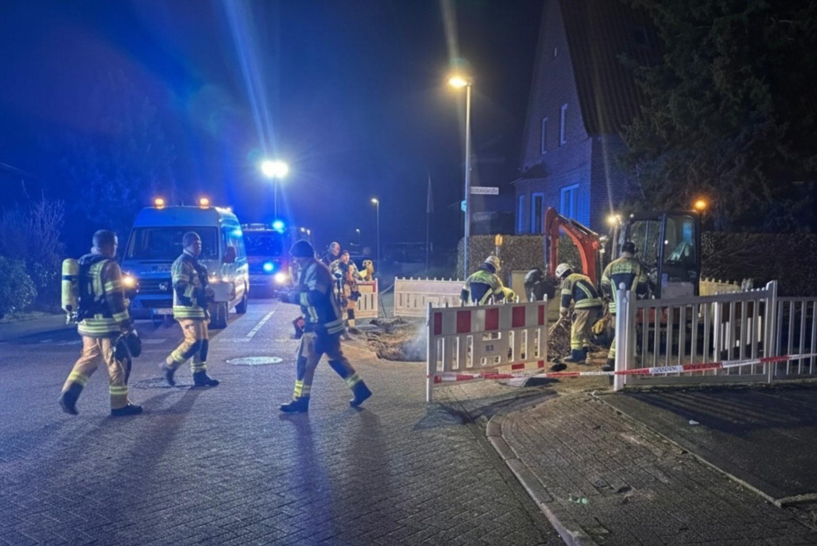 „Der Gasgeruch war weiträumig feststellbar. Messungen ergaben, dass im Bereich mehrerer Schachtdeckel bereits die untere Explosionsgrenze erreicht war. Aus diesem Grund wurde der Gefahrenbereich zunächst großräumig abgesperrt“, so Feuerwehr-Pressesprecher Dominik Janßen in seinem Bericht.