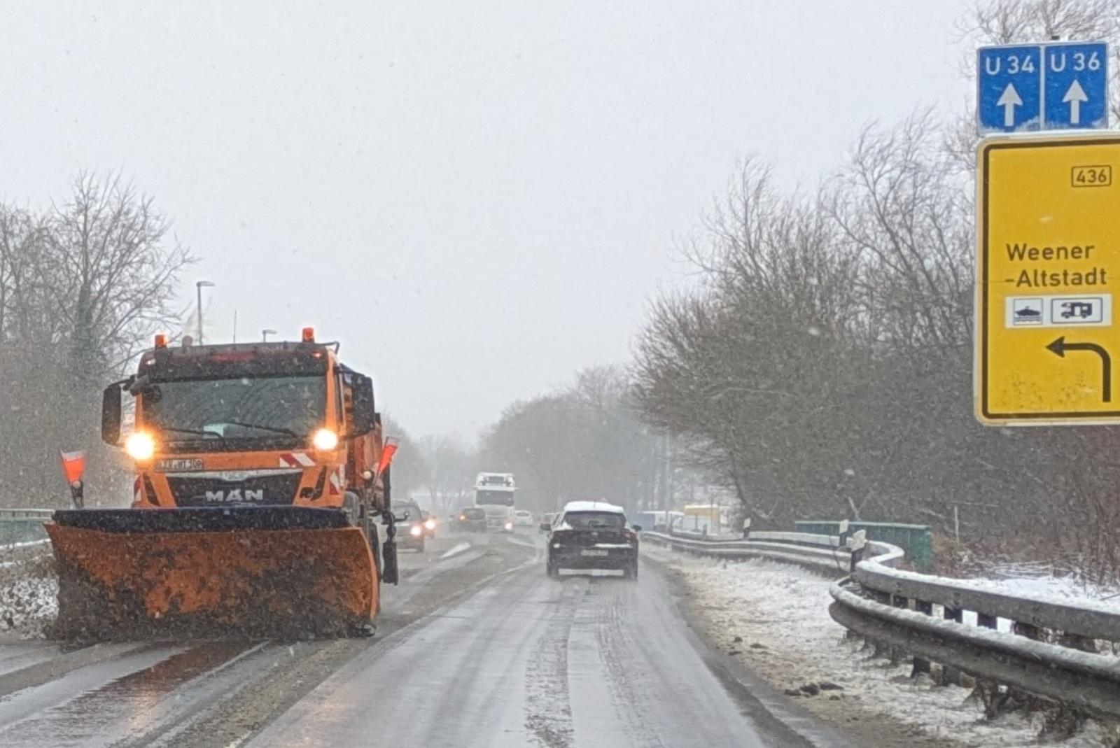 Räumfahrzeuge sind nicht nur wie hier auf der B 436 in Weener im Dauereinsatz, um Straßen frei zu halten. © Foto: Szyska
