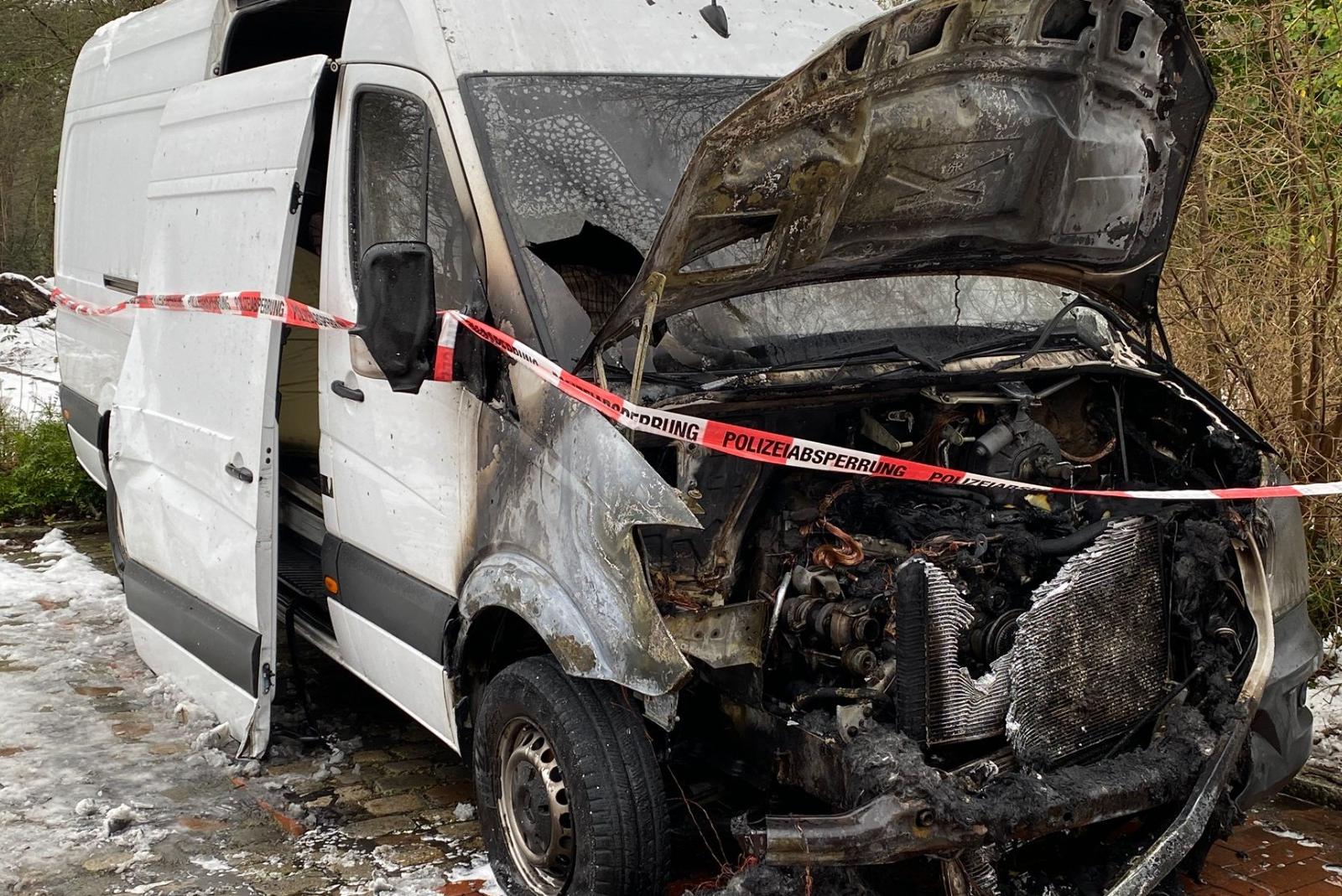 Transporter steht in Weener in Flammen