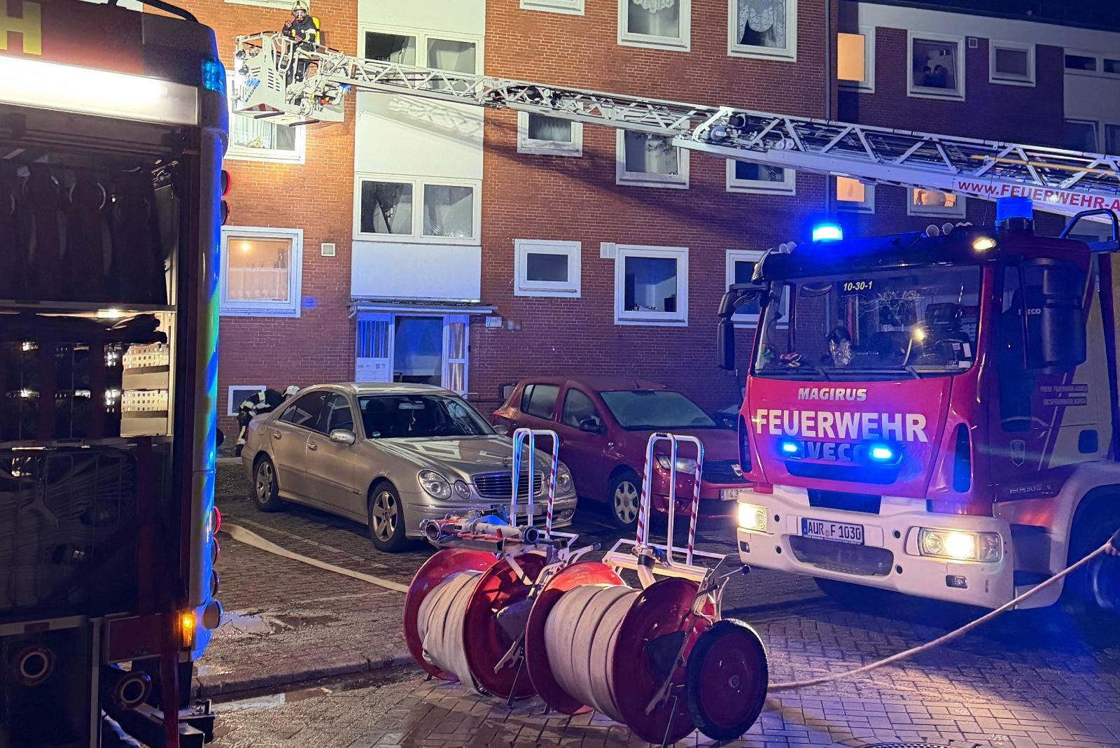 Noch gerade rechtzeitig konnten Bewohner eines Mehrfamilienhauses in der Thüringer Straße am Montagabend ihre Obergeschosswohnung verlassen, in der zuvor ein Feuer im Bereich der Küche ausgebrochen war. Sie setzten einen Notruf ab, die Feuerwehr Aurich wurde gegen 18.45 Uhr alarmiert. Atemschutzgeräteträger gingen umgehend in die stark verrauchten Räumlichkeiten vor. Parallel dazu war die Drehleiter der Feuerwehr vor dem bereits geräumten Gebäude in Stellung gebracht worden.