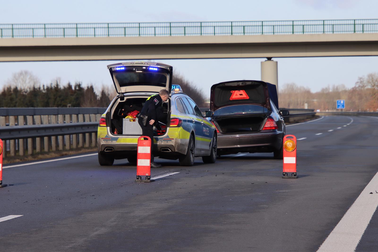Nach der Flucht des Niederländers am 6. Februar 2025 stoppten Polizisten den Mercedes auf der Autobahn 31 zwischen Lathen und Walchum im Emsland.  © Archivfoto: Brüning (dpa)