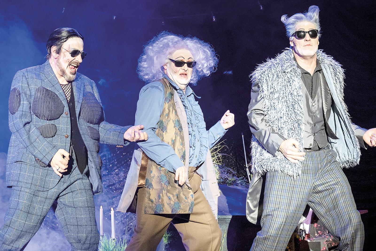Born to be wild: Die Herren Faupel (Stefan Faupel), Sommer (Christoph Sommer) und Heiß (Sven Heiß)lassen ihre Luftgitarren heulen. © Foto: Volker Beinhorn/Landesbühne