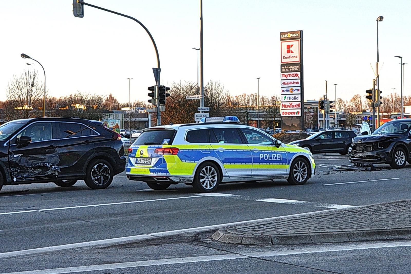 An der Kreuzung Heisfelder Straße/Eisinghausener Straße beim Emspark in Leer kam es am Samstagnachmittag um 16.43 Uhr zu einem Verkehrsunfall zwischen zwei Autos. Dabei wurden fünf Menschen leicht verletzt, teilt die Polizei mit.