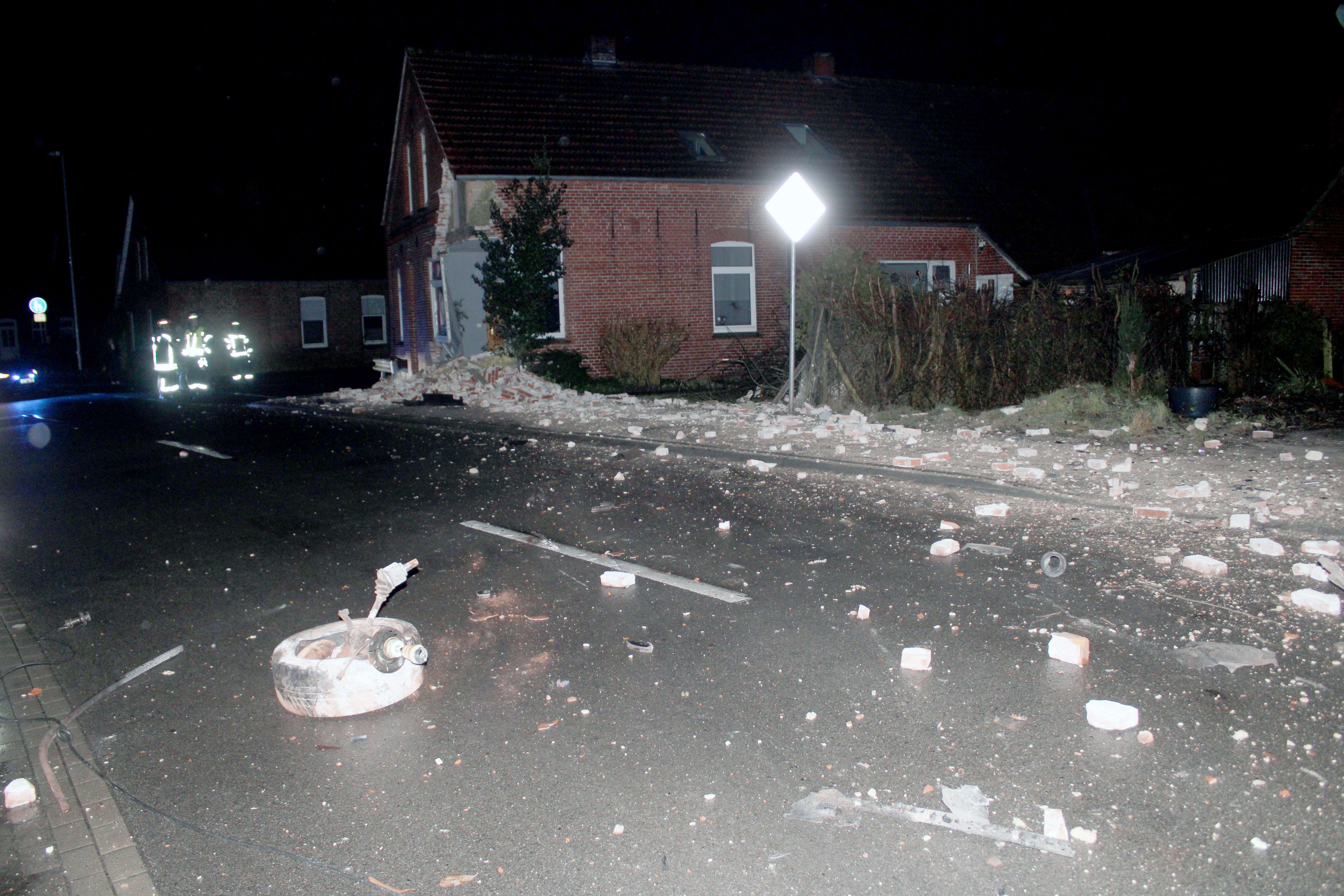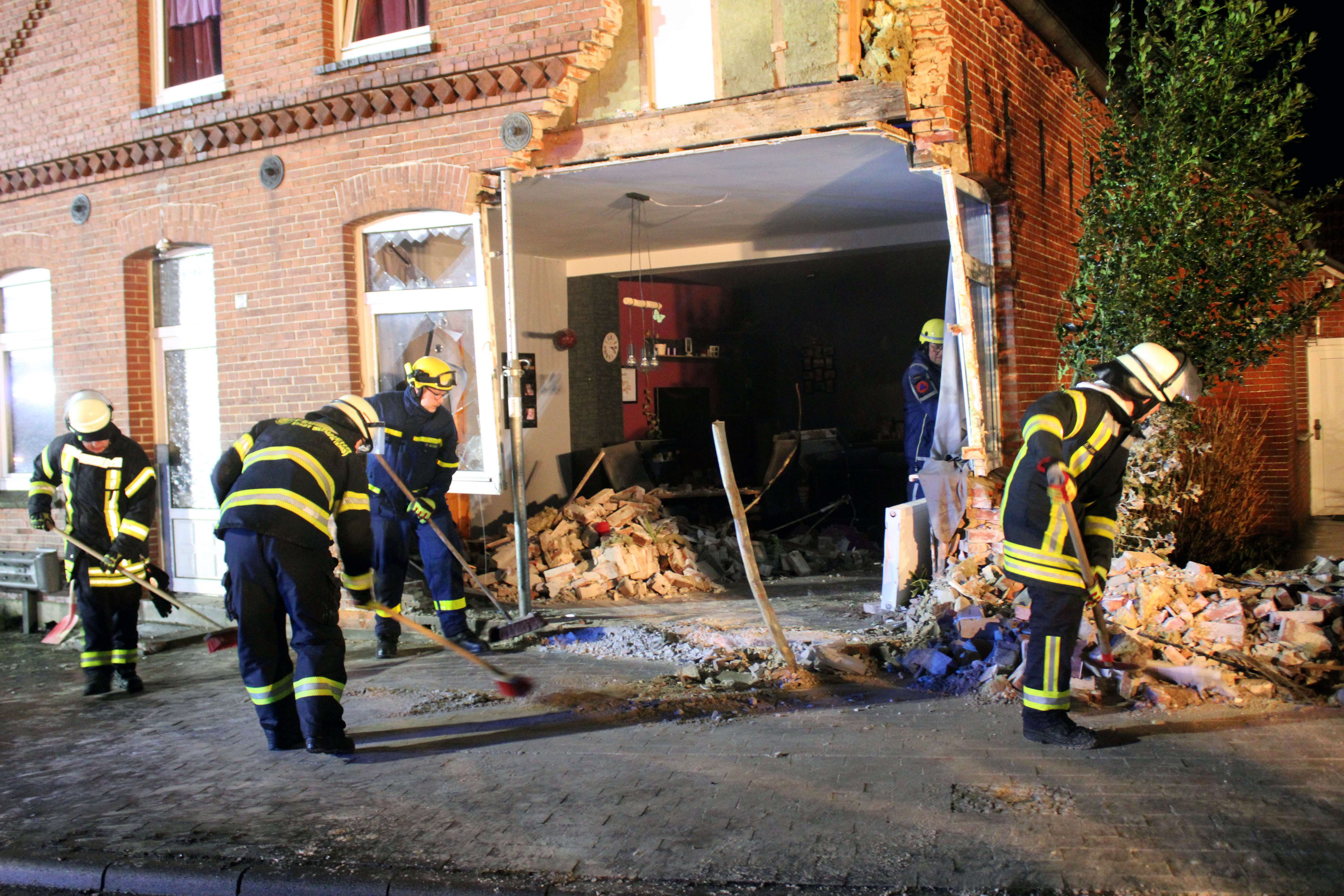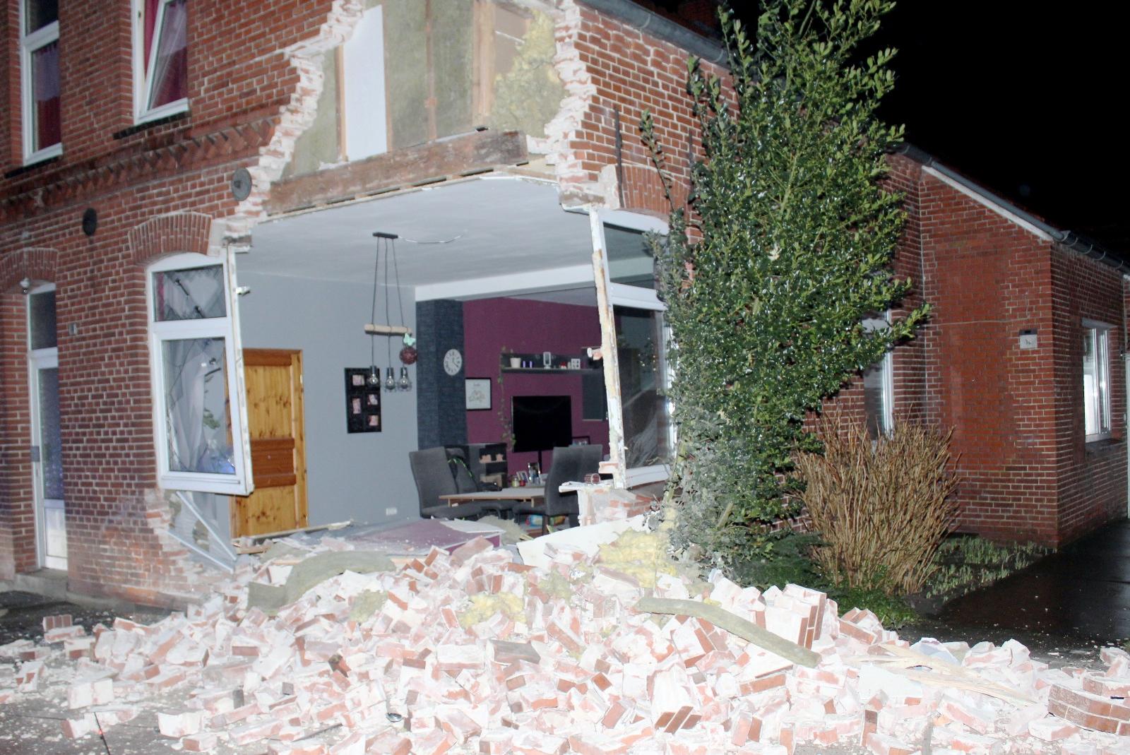 Nach einem schweren Verkehrsunfall auf der Kirchstraße in Holthusen ist ein Haus für längere Zeit nicht mehr bewohnbar. Ein Auto ist in der Nacht zu Samstag mit voller Wucht gegen eine Mauer geprallt und hat eine Ecke des Hauses komplett weggerissen.