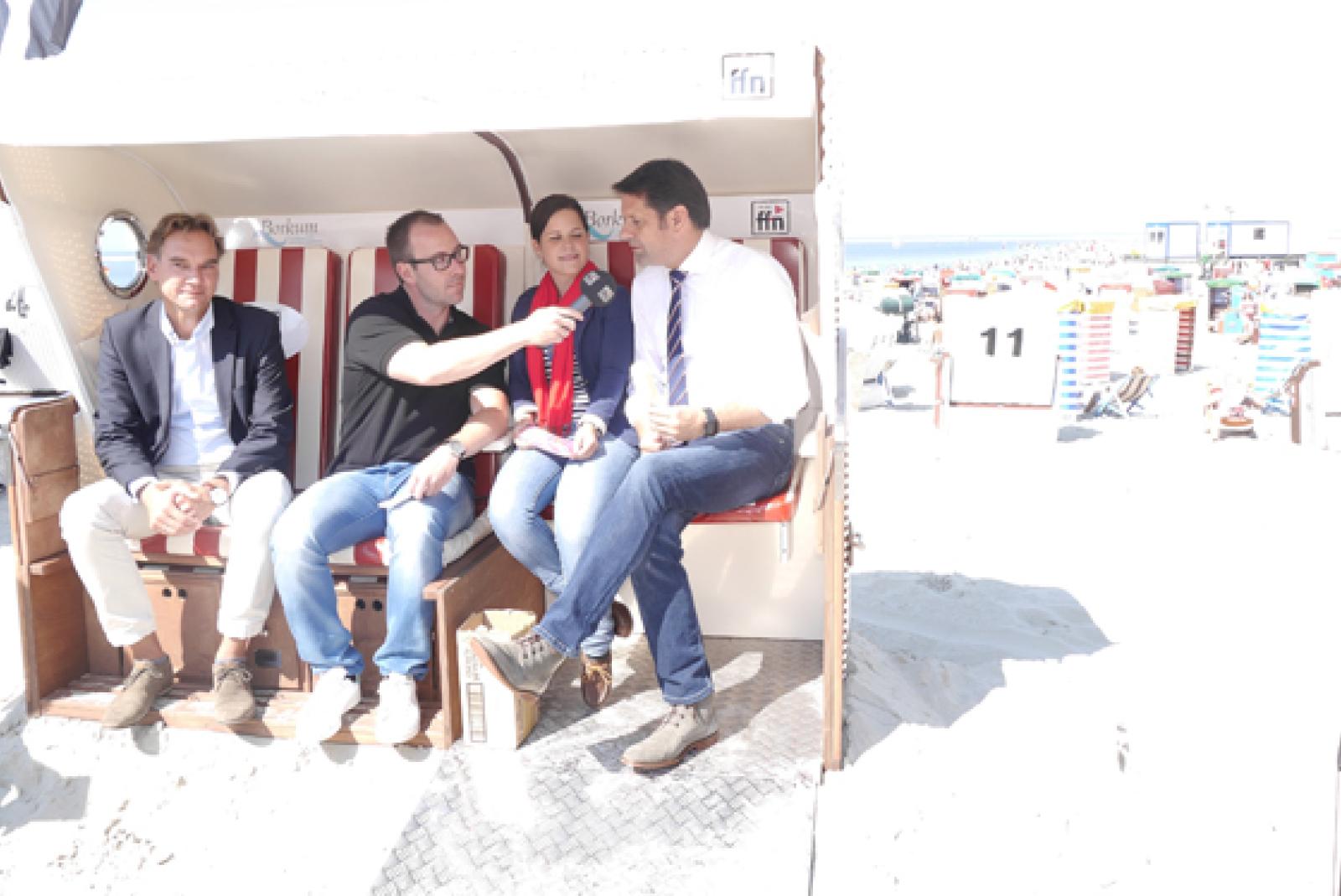 Minister Lies besucht Borkum - Barrierefreier Strandkorb